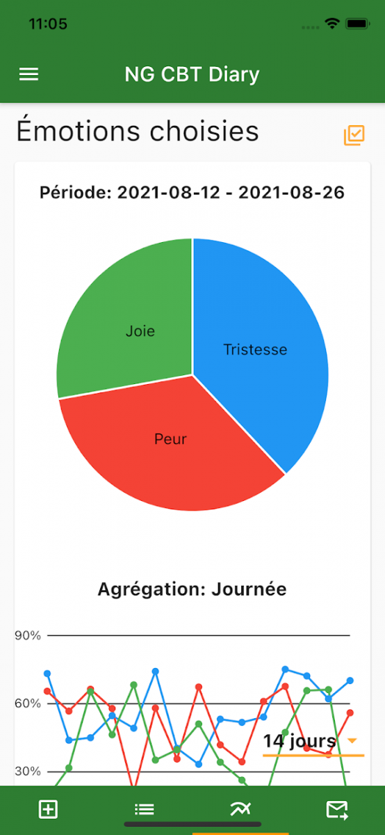 Avec certaines de ces applications, vous pouvez contrôler votre santé (BPD) et votre bien-être (NG CBT). Si nécessaire, vous pouvez envoyer un rapport à votre thérapeute ou à votre médecin. Vous pouvez utiliser d’autres applications (RNSG) pour le plaisir ou un usage quotidien. Des descriptions et des captures d’écran d’applications individuelles se trouvent dans le panneau de droite.