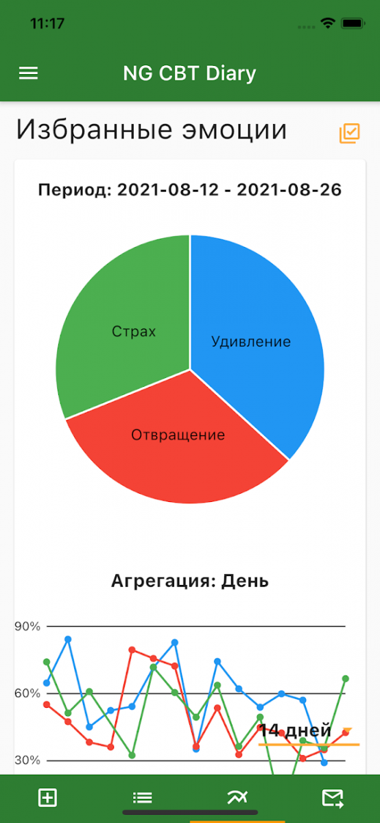 - создавать отчеты о событиях, мыслях и эмоциях и отправлять их своему терапевту;